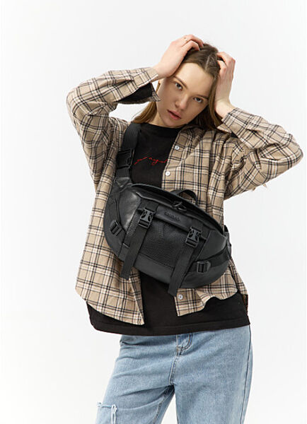 Велика шкіряна жіноча поясна сумка бананка чорна