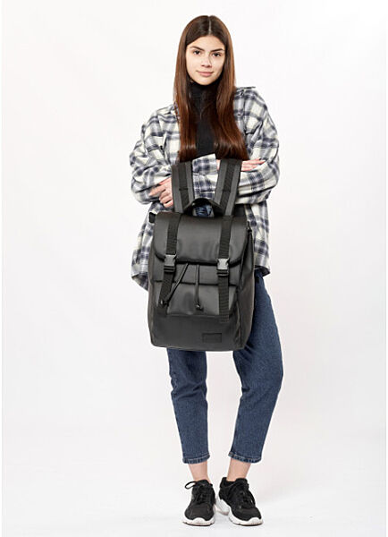 Жіночий рюкзак ролл еко шкіра чорний з клапаном