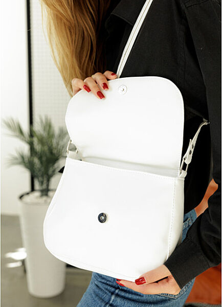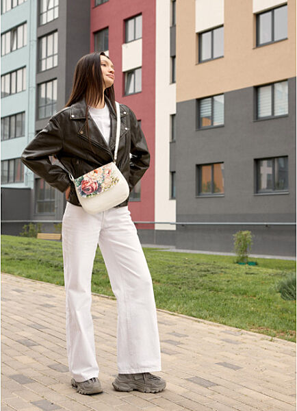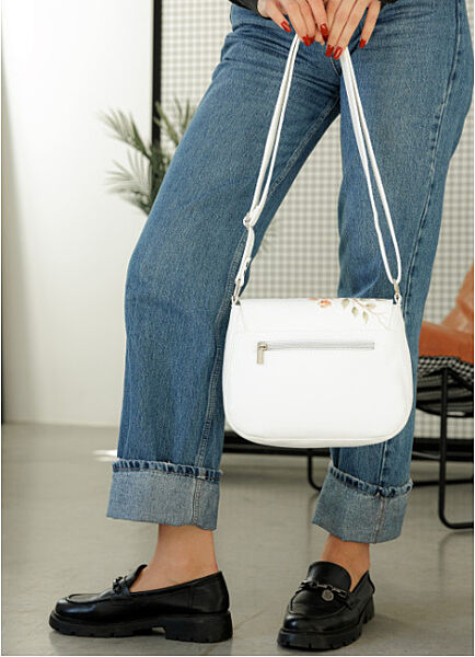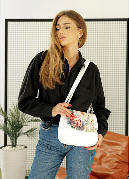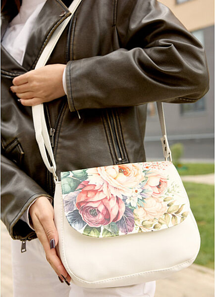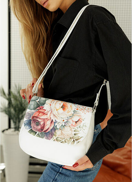 Жіноча сумочка шкіра еко біла з квітковим принтом