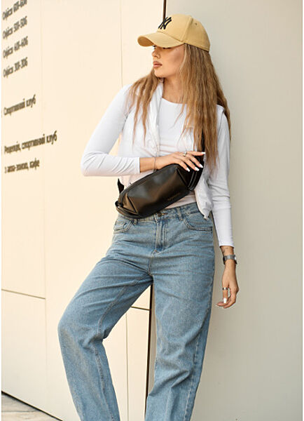 Жіноча шкіряна сумка через плече бананка чорна з перфорацією