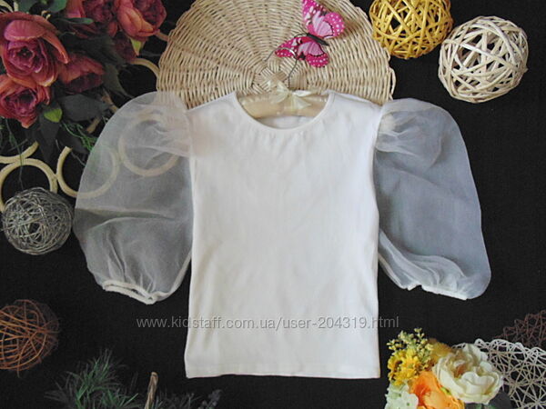 Шикарна трикотажна блуза з рукавчиками із органзи Asos на 10-12 років,зріст 140-152см