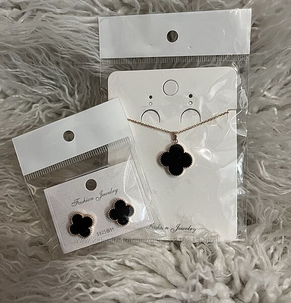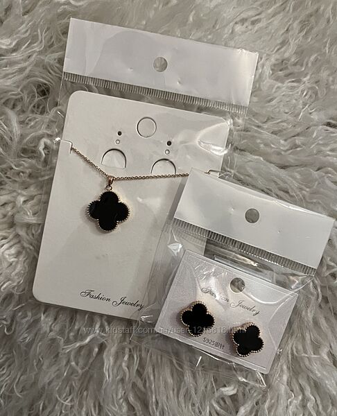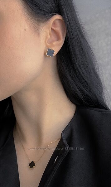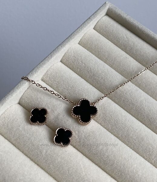 Сережки кулон цепочка клевер медицинское золото ван клиф