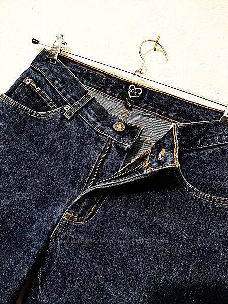 Джинси жіночі темно-сині на високий зріст, трохи розширені донизу, на всі сезони.Бренд ХОХО, U.S.A.. Позначення на бирці в поясі 7/8 означає, що джинси не йдуть до підлоги.