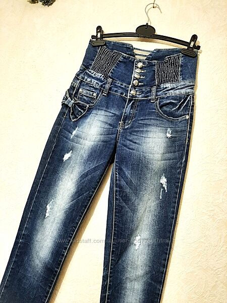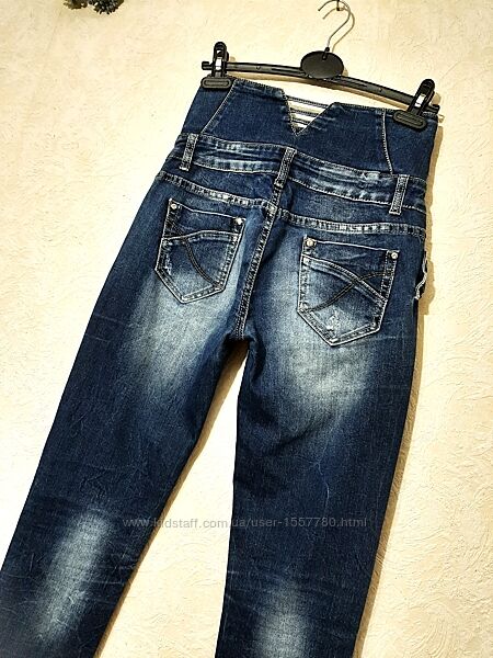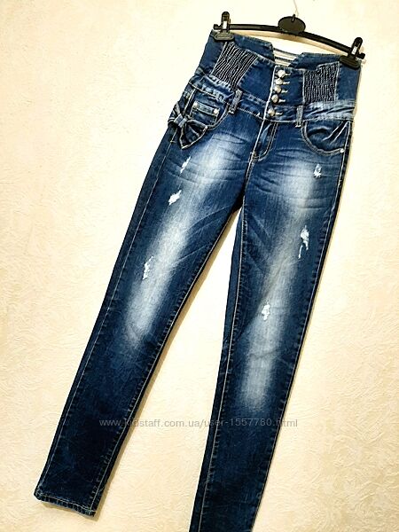 Подробное описание: Джинси жіночі сині на високий зріст талія завищена звужені донизу