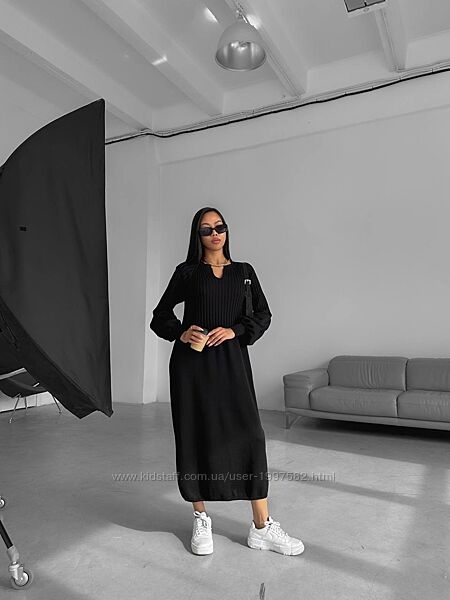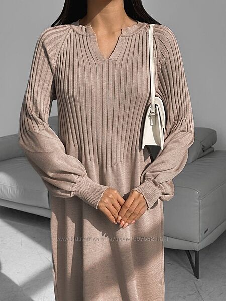 Подробное описание: Жіноча сукня вязана міді осіння демісезонна з довгим рукавом Якість люкс