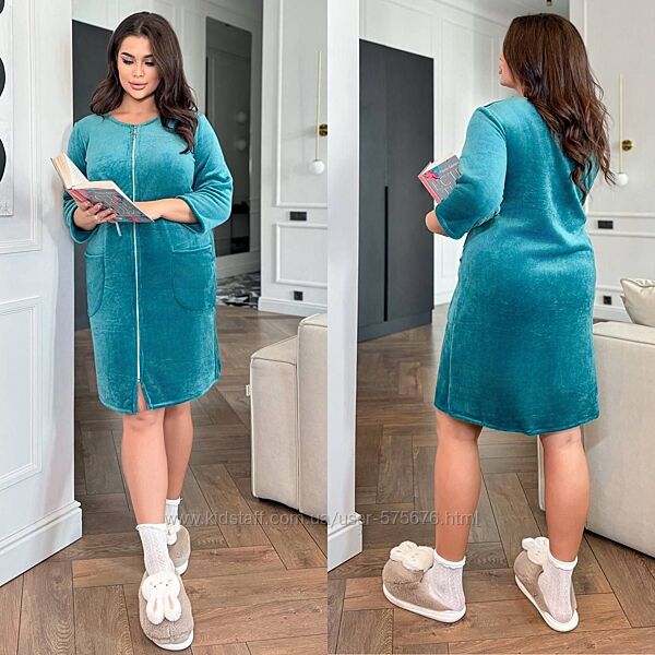 Подробное описание: р.42 до 56р. Жіночий халат, двосторонній плюшстрижений кролик