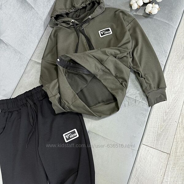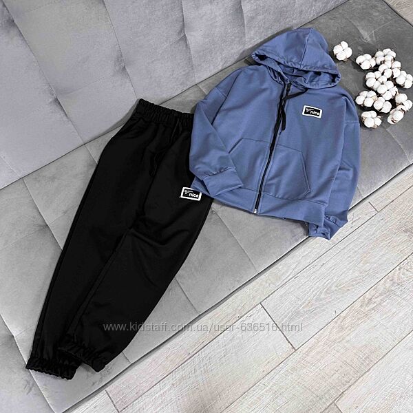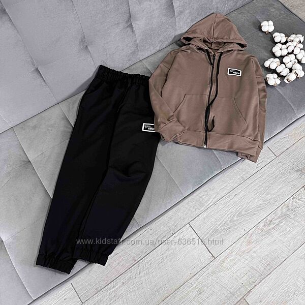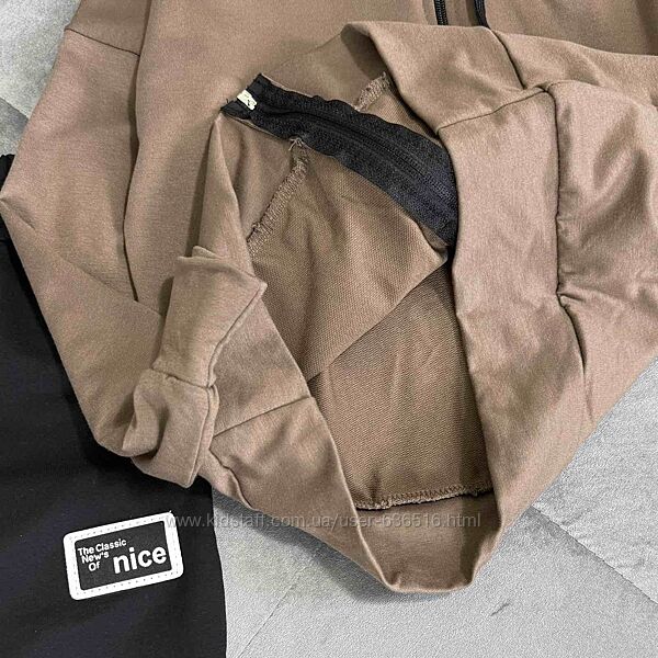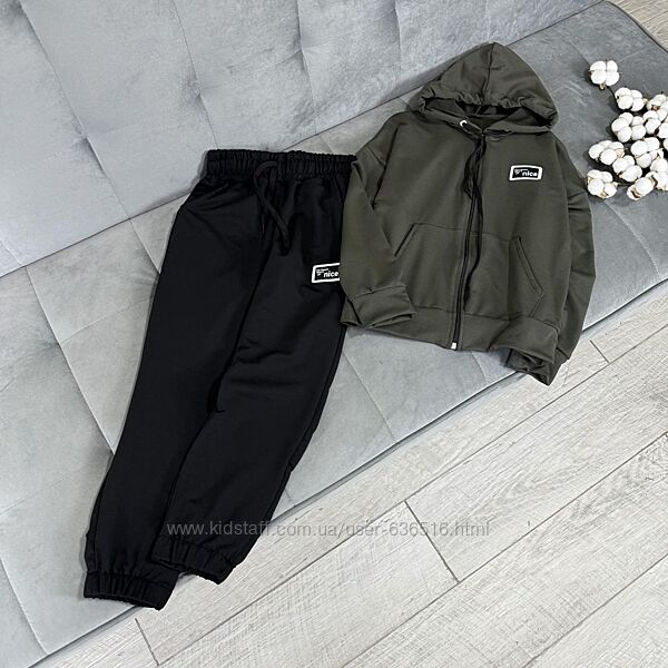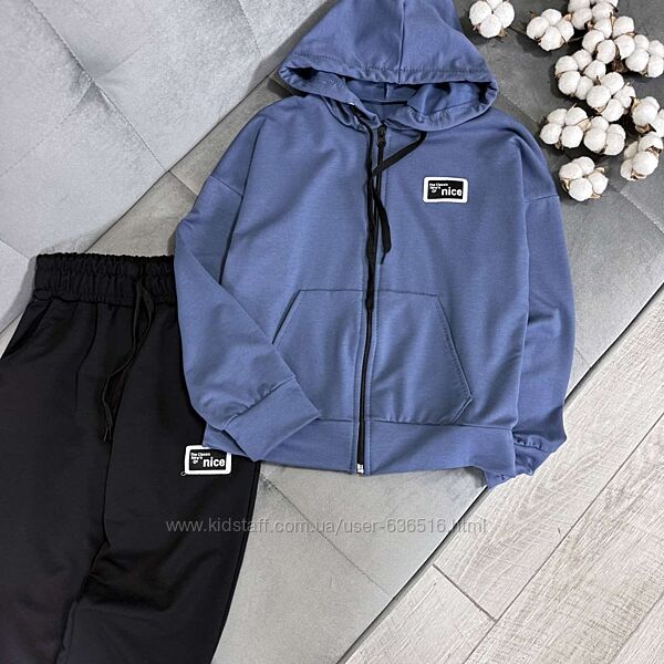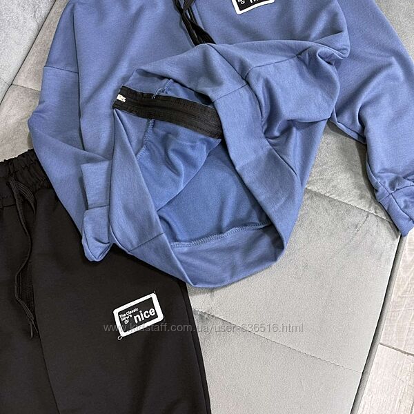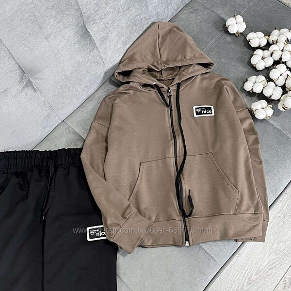 💕Костюм Nice. Тканина двунитка. Кофтинка на замочку та кишенями попереду. Штани з кишенями, в поясі резиночка та куліска. Емблема пришита. Виробник Україна.📐Заміри: рукав від капюшону