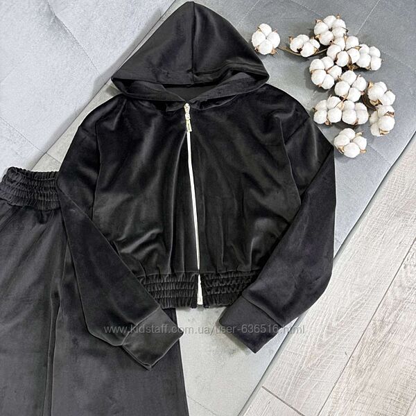 💕Костюм підлітковий велюровий, чорний. Кофтинка на замочку з капюшоном. Штани палаццо з кишенями. Тканина королівський велюр.📐Заміри: рукав від горловини