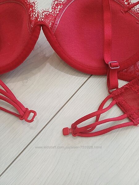 Колір-червоний, мереживо з "війками" по краях. Якість чудова! Підійде на розмір 70В