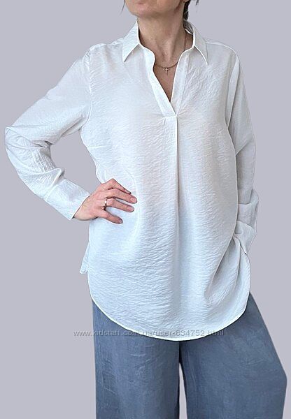 Подробное описание: Белая рубашка женская с v-образным вырезом next 46-48 вискоза
