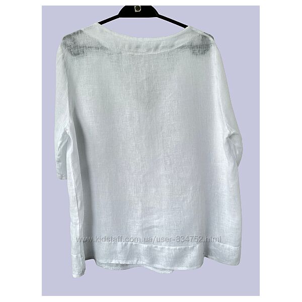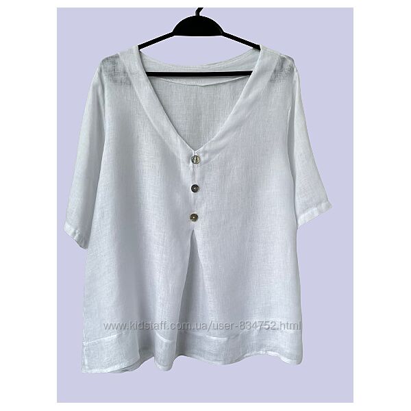 Белая льняная блуза с коротким рукавом и v- образным вырезом 48-52, италия