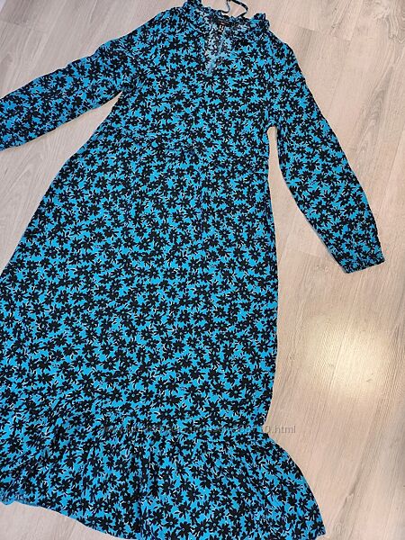 Комфортное ярусное платье миды оверсай из красивого синего цвета с цветочным принтом от New look10-M, подойдет и на 8-S.