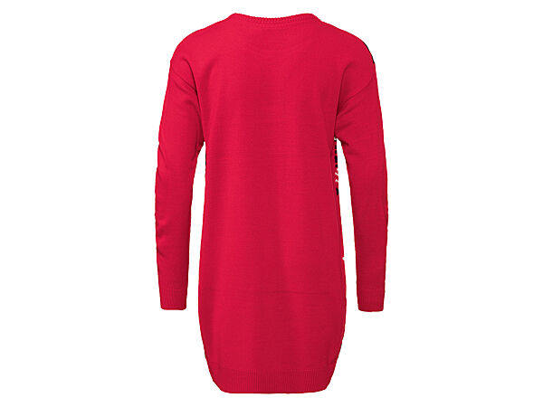 В´язана сукня з милим різдвяним мотивом. Жакардовий візерунок з миготливими світлодіодами та звуковим ефектом. Ребристі манжети на горловині та подолу. Електроніку можна мити. Підсвічування може не працювати, тому що в процесі доставки може розрядитися живильний елемент. Підсвічування та звук, що не працює, не вважається браком.Заміри: надаємо по запиту