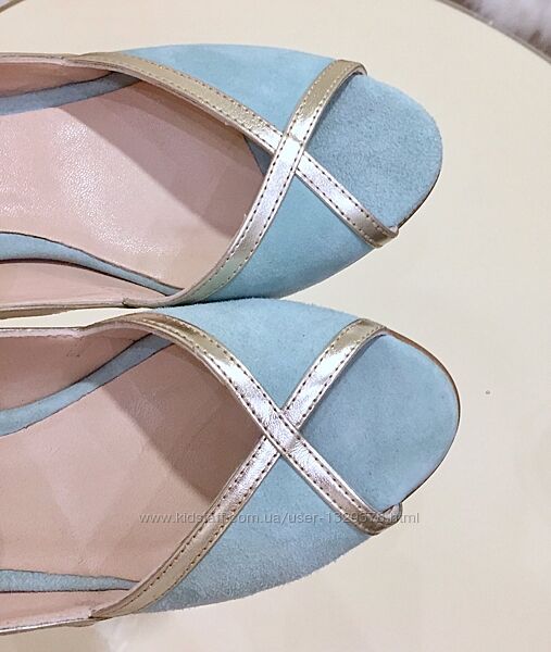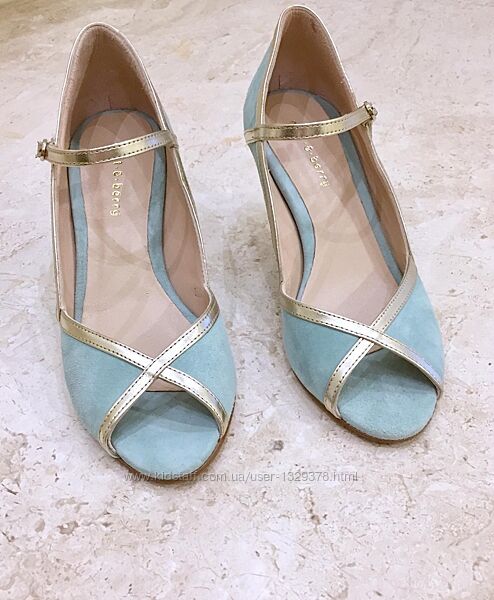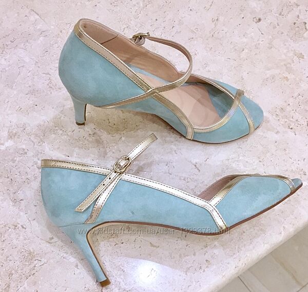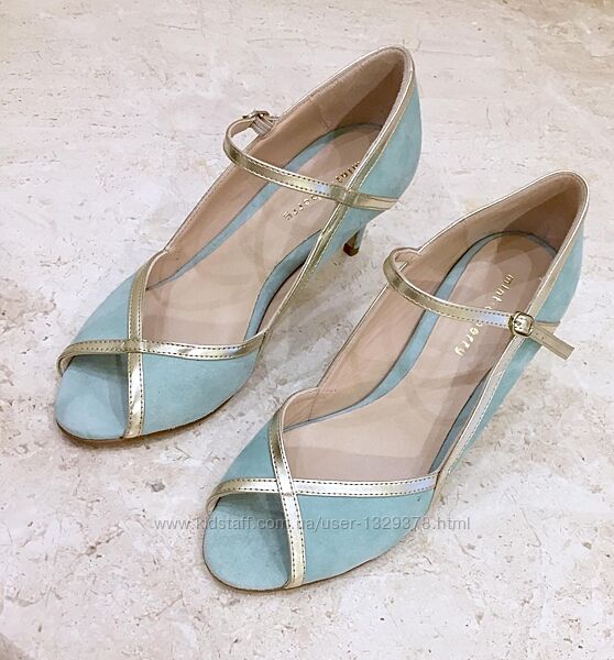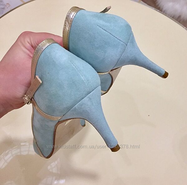 Нові. Туфлі замшеві люкс бренду MINT BERRY Suede Leather Pumps Mint/Gold ори