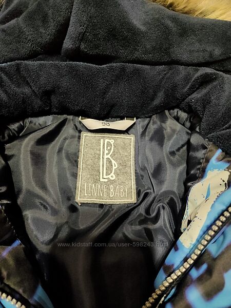 Куртка зимова lenne 98р. Стан нової, без пошкоджень. Єдине що емблема на рукаві надламався уголок. Довжина перед 50 см, зад 54 см, ширина 42 см, рукав від плеча 41 см, плече 8 см.Дуже тепла і легка. Ідеально на 98-104 см.