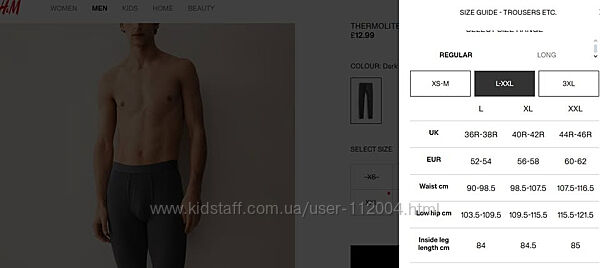 Подробное описание: чоловіча термобілизна H&M, р. L, 180, 3/4 4/8, бавовна, штани, білизна