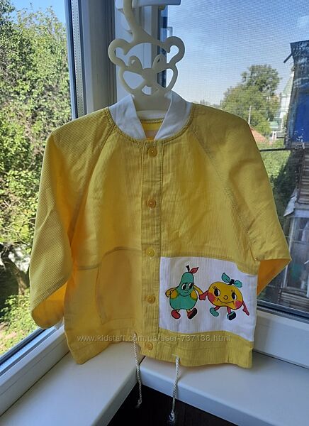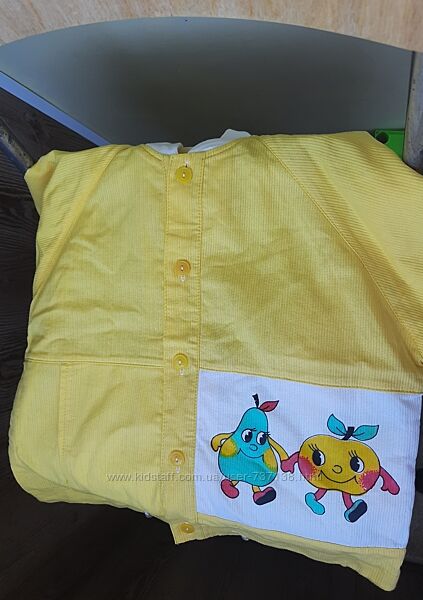 • Нова піжамна сорочка приємного жовтого кольору. Вік 5 - 6 років. Є гудзики, карман, веселий принт - яблуко-груша. Cotton. Заміри: довжина 45,5 см, ПОГ 43 см, ПОТ 40,5 (є зав´язки), рукав від шиї 44 см, під руками 27 см. Ціна 60 грн.