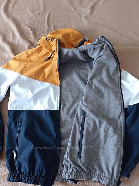 Куртка двостороння для хлопця р. S на зріст 164+-см. Кольорова сторона - водовідштовхуюча тканина, а сіра - щільний трикотаж.Дуже гарний стан, носили рідко. Купували у Waikiki.