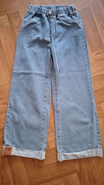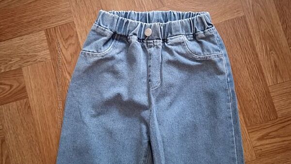 Джинси для дівчинки у гарному стані Дефектів немає, носили мало Талія на резинці Гарна якість, до низу трошки розширенні Р. 150 Заміри: ПОТ 23 см, ПОС 41 см, довжина внутрішнього шва 54 см, загальна довжина 79 см, висота посадки спереді 26 см, сзаді 32 см, ширина штанини зверху 24 см
