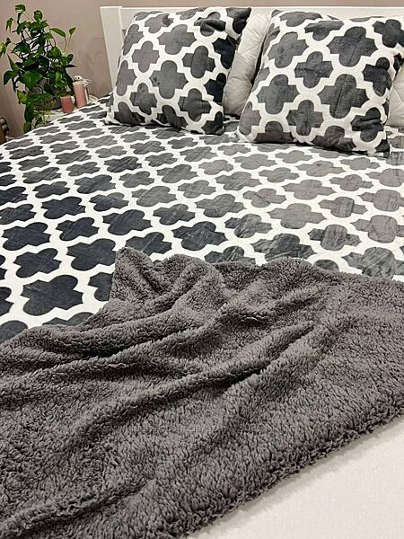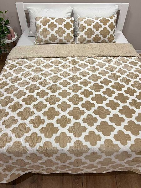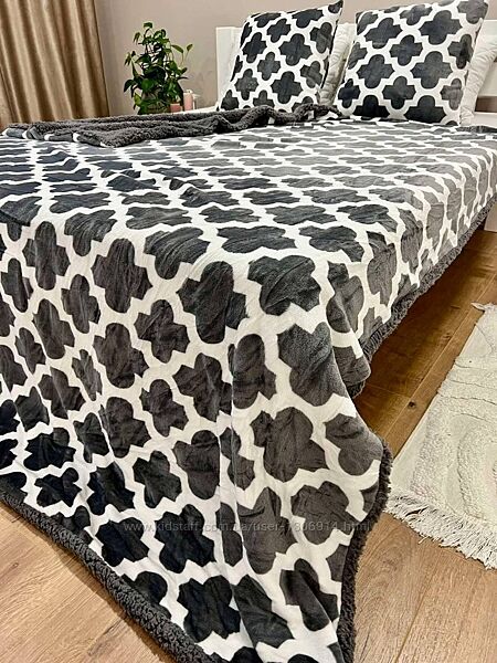 Двостороннє плед-покривало з подушками – комфорт і стиль в одному.Одна сторона: м’який велюр