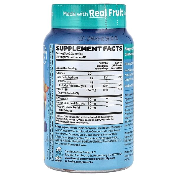 Продукти Smurfs™ Calm & Relaxed відрізняються високою якістю. Ці жувальні мармеладки виготовлені зі справжніх фруктових соків і пюре, що забезпечує смачний натуральний смак ягід смурфа, який сподобається дітям і дорослим.