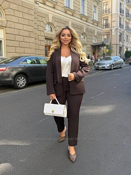 ХарактеристикаЗначенняРазмер:48-50, 52-54, 56-58, 60-62 Цвет:шоколадТкань:піджак та брюки - костюмка, Майка шовк Армані з французьким мереживом.Длина рукава:61-64 смДлина по спинке:68-71 смДлина по внешнему шву:89-92 смРост модели:172 смСезон:осіньДругие объявления продавца