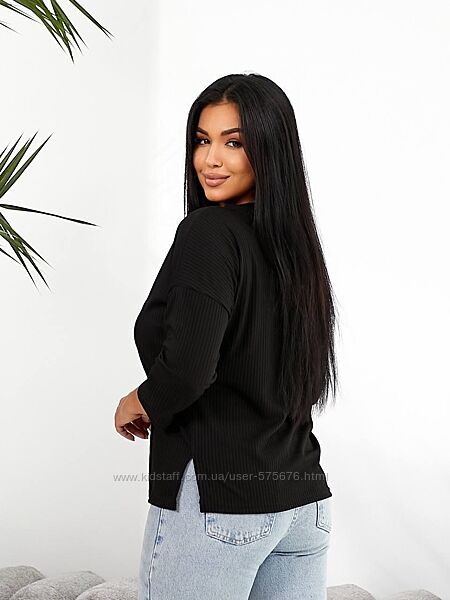 р.46 до 56р. Базовий лонгслів, трикотажний рубчик