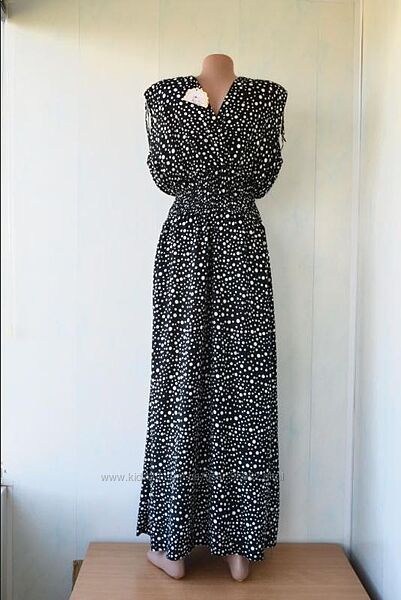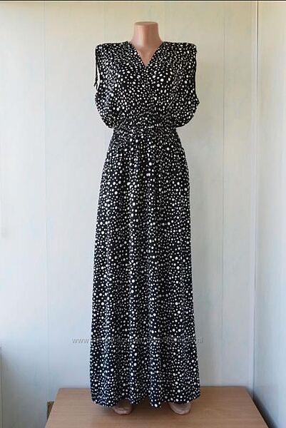 Плаття в горошок у підлогу Z & W, Італія (Рим), зі 100% віскози. Легка тканина, приємна до тіла, на талії на гумках, які ідеальносідають, саме плаття будить, витягує силует. На бирці розмір м-л.