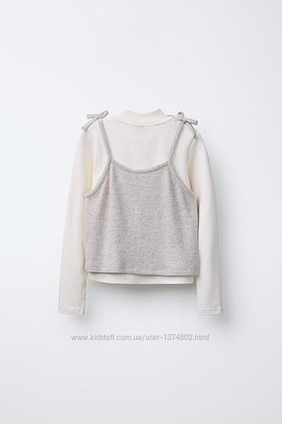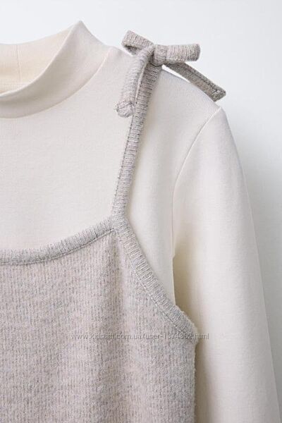 Дитячий комплект ZARA для дівчинки: водолазка + жилет з бантом в рубчик.✅️ Жилет знімається, що робить комплект універсальним для різних подій.