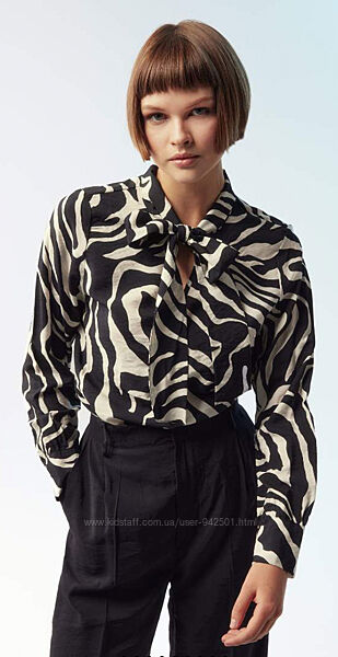 Принт чорно білий, абстракція, комірець завязується на бант.