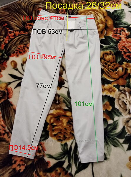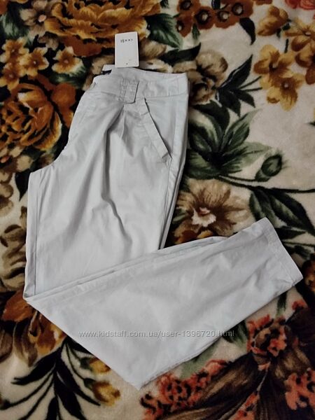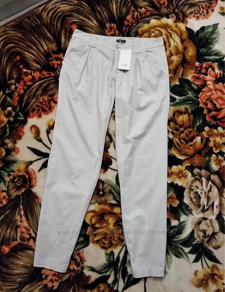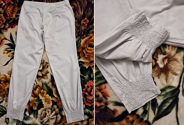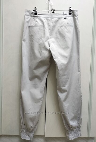 Нові літні брюки світло сірого кольору, розмір 38-М - виміри на фото. Склад 100% бавовна. Середня посадка з защіпами, низ штанини по спинці нарезинці - добре сідають по фігурі.