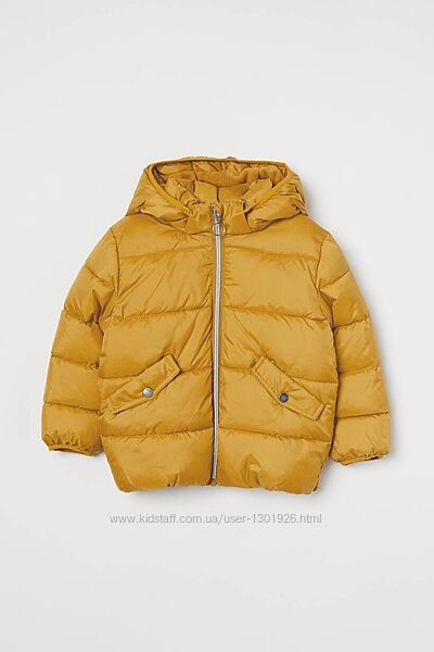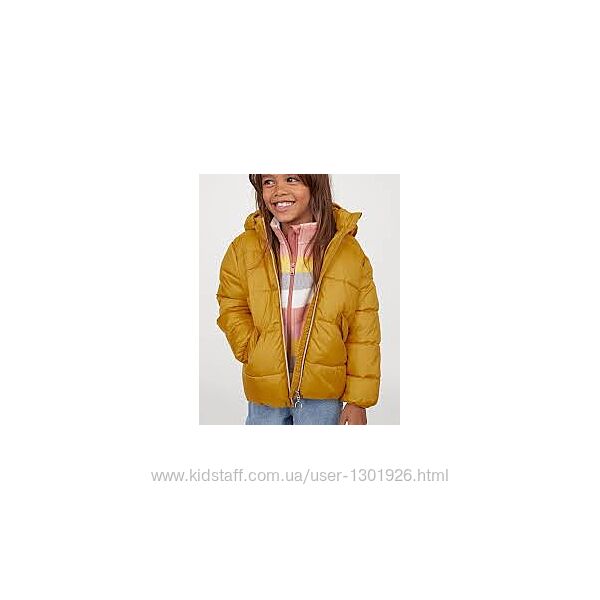Стьобана куртка H&M, на дівчинку 6-7 років, 122 см зріст з коміром-стійкою та знімним капюшоном з флісовою підкладкою. Застібка-блискавка спереду з кільцем для зручного відкривання та захистом підборіддя у верхній частині, а також кишені з клапанами спереду.На осінь та теплу зиму.