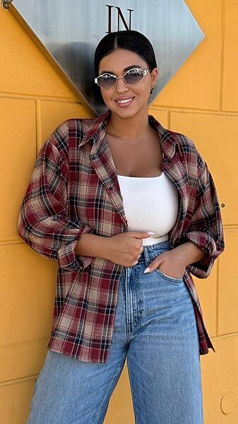 Універсальна сорочка оверсайз зі спущеним рукавом, по спинці – кокетка, застібається на кнопки. Рукав довгий на манжеті, підгорнутий на три чверті пасує краще.Тканина : фланель - котон , застібається на кнопки.