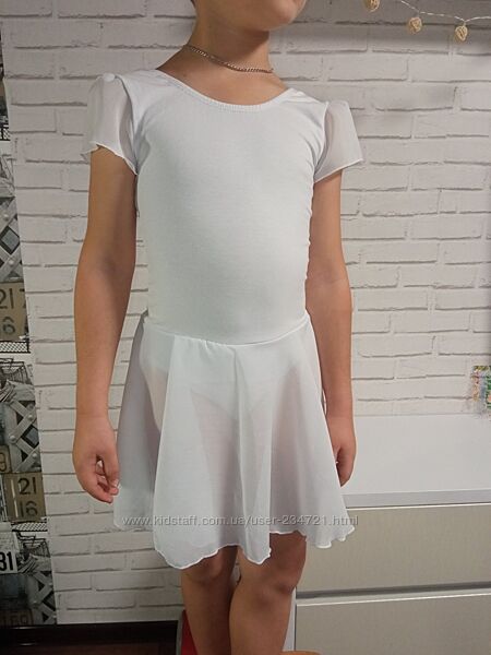 Купальник гімнастичний зі спідницею, полотно фулікра (95% бавовна, 5% еластан) + спідниця шифон. Полотно приємне до тіла, добре тягнеться. У наявності в рожевому, чорному та білому кольорі. Є палітра кольорів для індивідуальних замовлень.ціна від 410грн .розміри від 98 росту до 164Другие объявления продавца