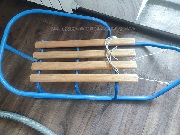 Комфортні зимові санки.Сидіння санок виконано з чотирьох планок натурального дерева ясена.Сама конструкція виготовлена з міцної сталевоїтруби. Санки стійкі навіть на різких поворотах.В комплект входить