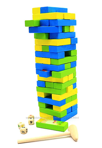 Настільна гра Вежа - пазли (Дженга, Джанг, Башня, Jenga, Vega) Fun Game Дерев´яна гра пазли Вежа - це запорука веселого, а найголовніше, корисного проведення часу для всієї родини. Принцип гри - дуже простий. З дерев´яних брусків складається вежа, а учасники, по черзі, витягають з неї бруски таким чином, щоб вежа не зруйнувалася. У комплекті ви знайдете спеціальний молоточок та 3 гральних кубики. Головна особливість моделі - пазли, з яких збираються 3 картинки: ведмежа, слоник і півник. Розміри / габарити - Довжина (см): 7 см - Ширина (см): 2 см - Висота (см): 1.5 см Розмір упаковки: 26 см × 5 см × 16 см Вік: від 3 років У наявності 2 шт. Натуральне дерево. Повернення нема