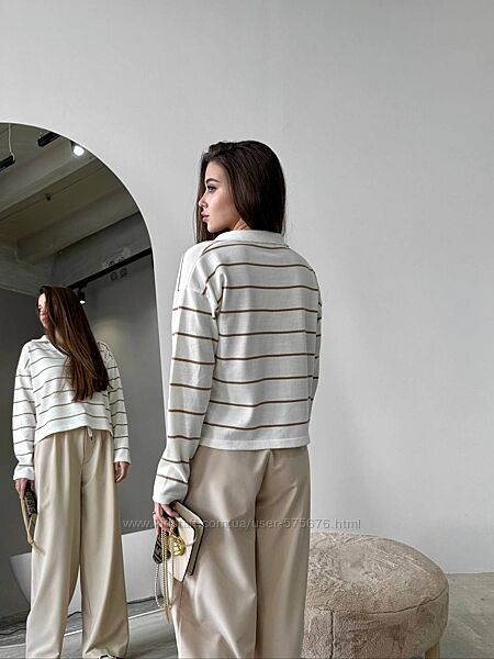 Подробное описание: 42-46 Неймовірно легкий, приємний до тіла поло вільного покрію у смужку