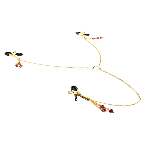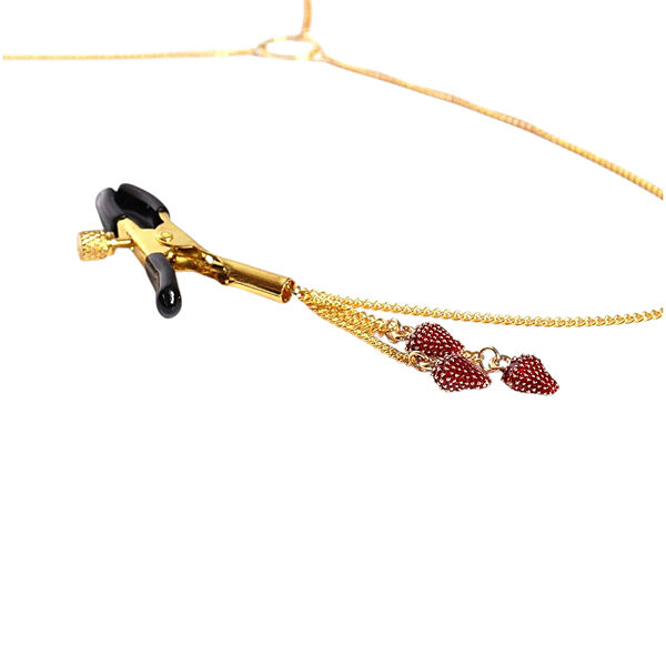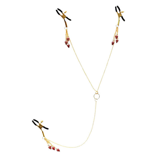Затискачі для сосків та клітора Art of Sex Strawberry – це стильний та збуджуючий аксесуар для сміливих дівчат, які люблять експериментувати та відкривати нові грані задоволення. Вони допоможуть додати гостроти та пікантності до ваших інтимних ігор, а також подарують незабутні відчуття під час стимуляції.Кожен затискач оснащений зручним регулятором, що дозволяє настроїти силу стиснення під ваші індивідуальні уподобання. Металевий ланцюжок між затискачами має оптимальну довжину, забезпечуючи комфорт та свободу рухів, при цьому роблячи ваш образ більш спокусливим.