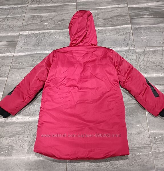 Зимова подовжена куртка, фабричний Китай, вдягали дуже мало, бо малий не хотів) Колір бордо, фото не передає. Капюшон пришитий, глибокі кишені, рукава на манжетах. Розмір вказано 140, але дивіться заміри, маломірить.Ширина плечей 37 см, напівобзват пахв 43 см, довжина 65 см, довжина рукава 47+манжет 51 см.