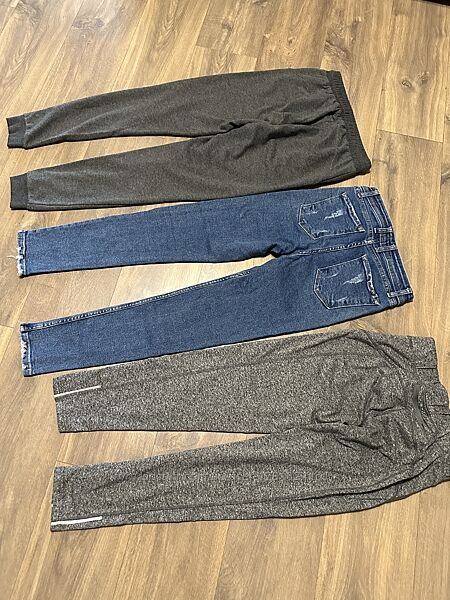 Віддаю всі 3 пари брюк (спортивні + джинси скіні + спортивні теплі )