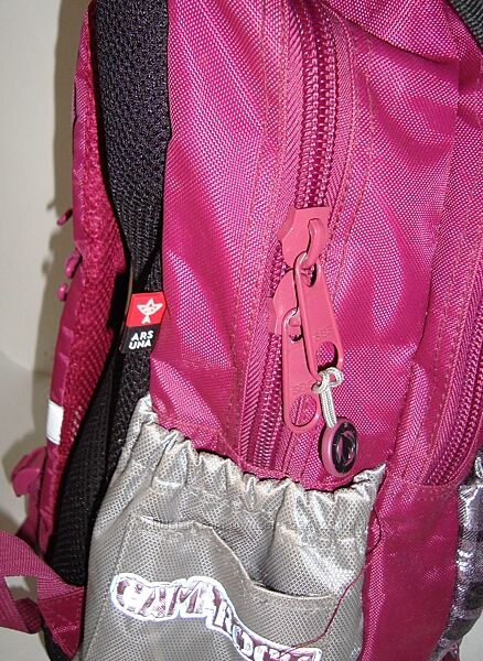пластиковое дно, дождевик . Два боковых кармана для бутылок или термоса