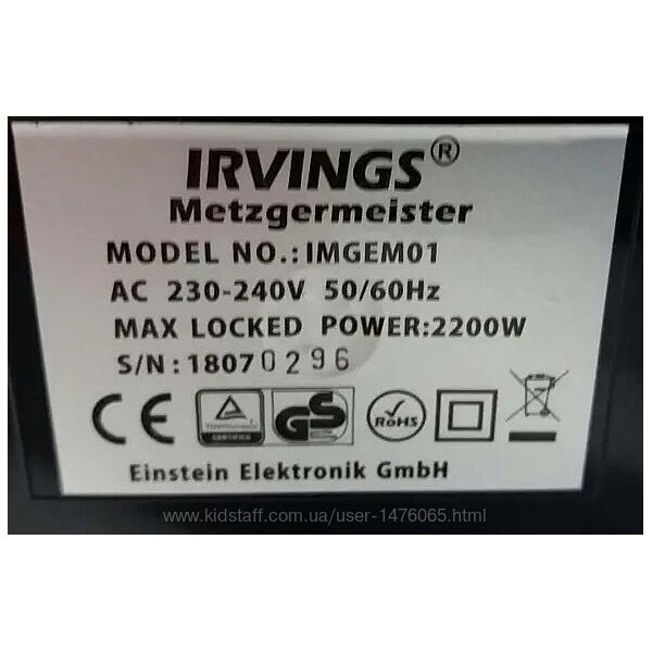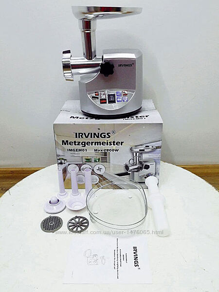 Привезена з Німеччини нова повністю металева електрична м’ясорубка Irvings модель IMGEM01.Потужність (макс.) – 2200 Вт, продуктивність – 1,8 кг м’яса/хвилину.