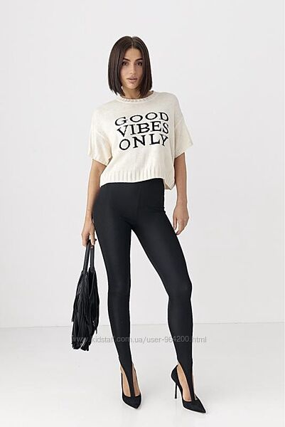Подробное описание: Еластичні чорні лосини зі штрипкою на палець, гладкі еластичні лосіни