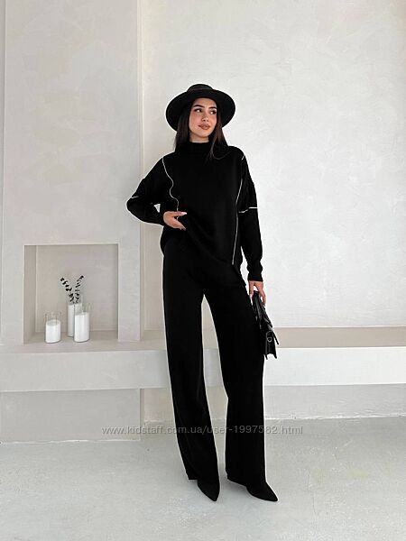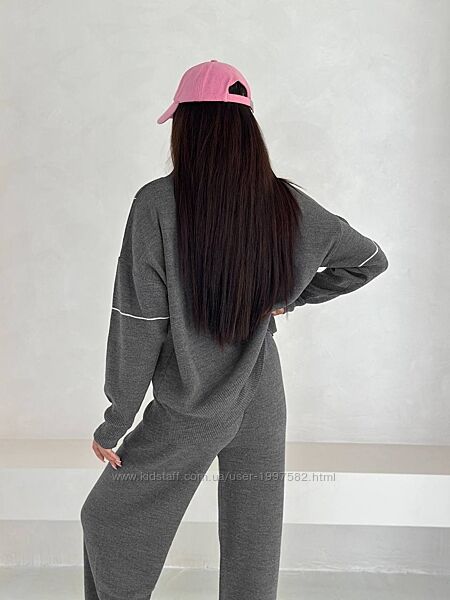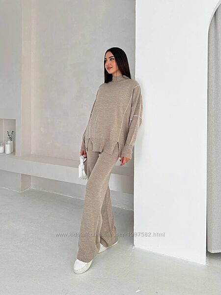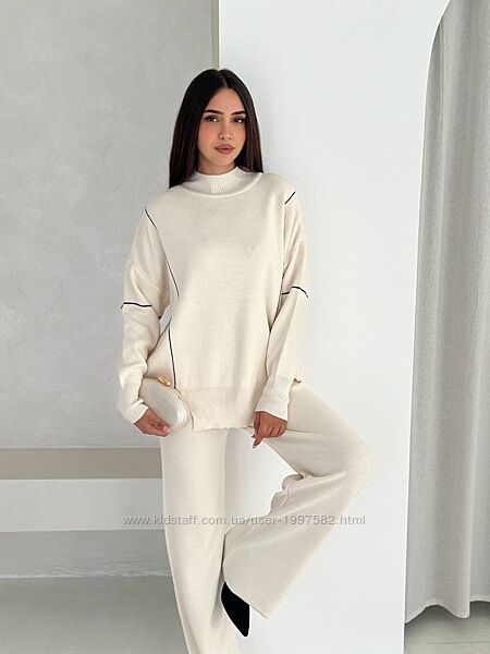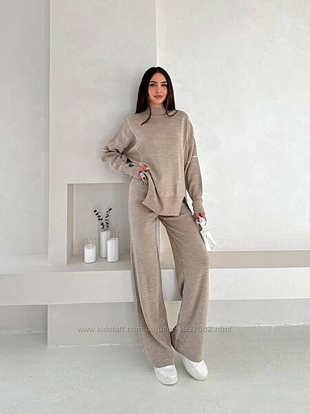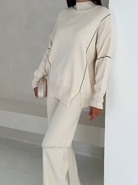 Інші брючні костюми нашого магазину Ви можете переглянути за посиланням: https://www.kidstaff.com.ua/user-anno-1997582/sect...Комплект із приємного до тіла трикотажу включає светр оверсайз із заниженою лінією плеча та широкі штани прямого крою. Фото реал