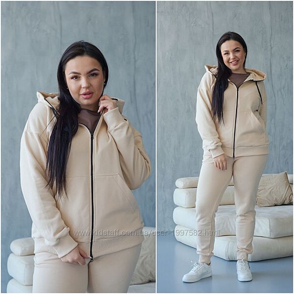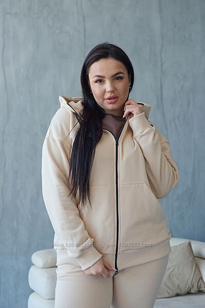 Подробное описание: Жіночий костюм iз зіп-худi. Без утеплення Зіп-худi подвійний капюшон, ман