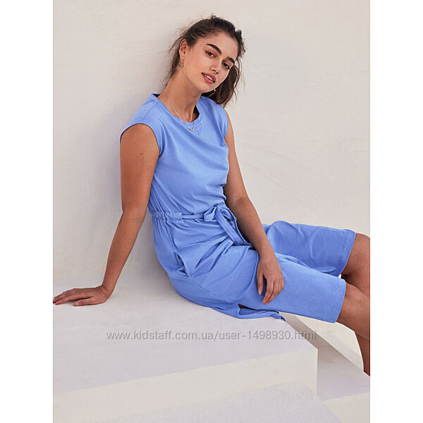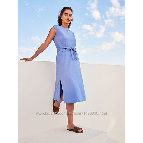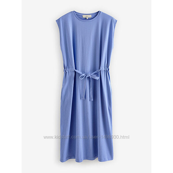 Літня бавовняна міді сукня-футболка з поясом р.16