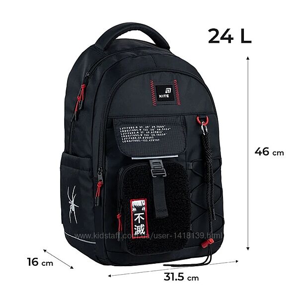 Подробное описание: New. Рюкзак Kite teens чорний розмір L на зріст 145-175см K25-2597L-1