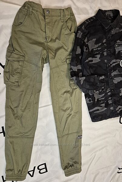 Ідеальний варіант як в школу, так і для повсякдення всі речі в ідеальному стані, вдівались дуже мало, переросли розмір Штани карго name it-німеччина, мають Регульований пояс, Застібка на блискавку та гачок Дві практичні кишені карго та бічні кишені Декоративні задні кишені\98% бавовна,25 єластан\розмір 164, підійде і на 158 Виміри: довжина 96\ крок 745\пот 30+40 \ пос 40+48\ посадка перед 23, сзаду 28см