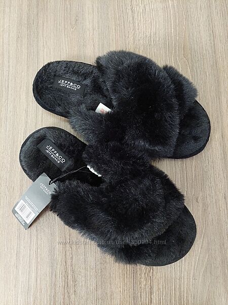 Дуже гарні шлепанці чорні хутряні з переплетенням.австралійського бренду Jeff & Co.Хутро штучне гарної якості. Устілка 27 см, Підійде на стопу 25,5- 26.5 см. Повнота середня і трохи ширша.