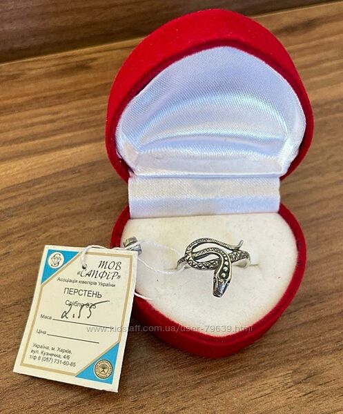 Нова Срібна каблучка Змійка (виробництво Україна).Чорнене Срібло 925 проби, бірка, пломба.